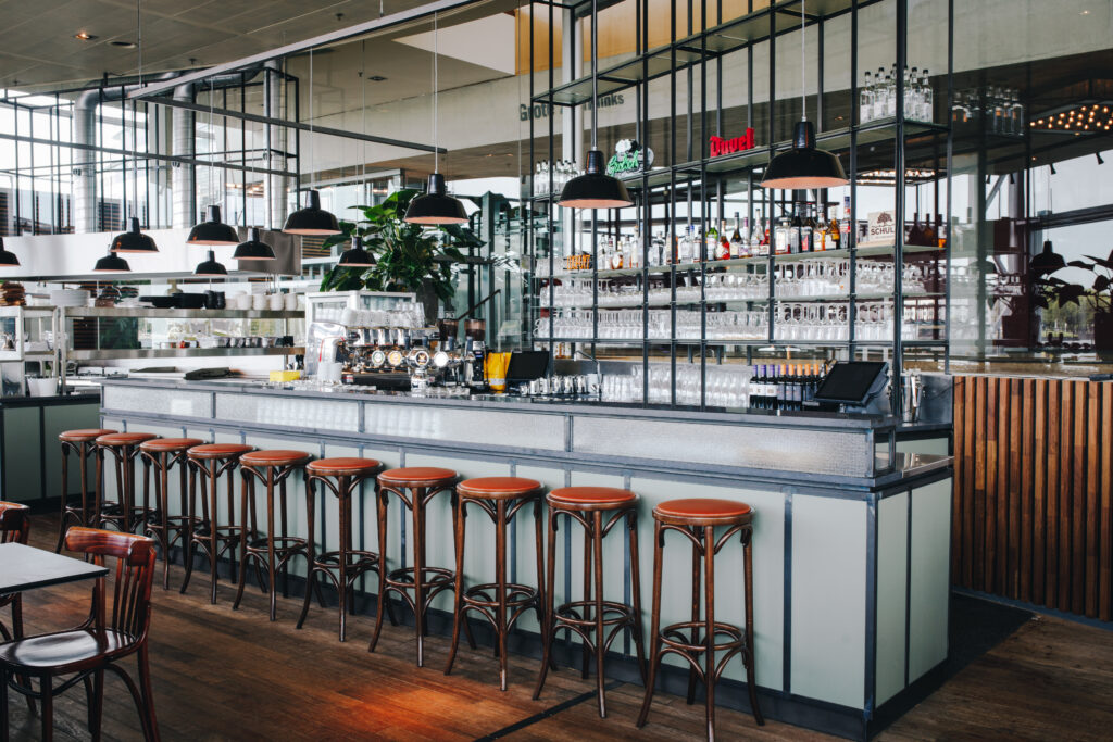 De brasserie is licht en open, met uitzicht over het IJ. De ruimte leent zich goed voor lunches en diners aan lange tafels, maar ook voor een informele setting zoals een borrel, walking dinner of buffet. Afhankelijk van de opzet is de brasserie geschikt voor gezelschappen van circa 10 tot 120 personen.