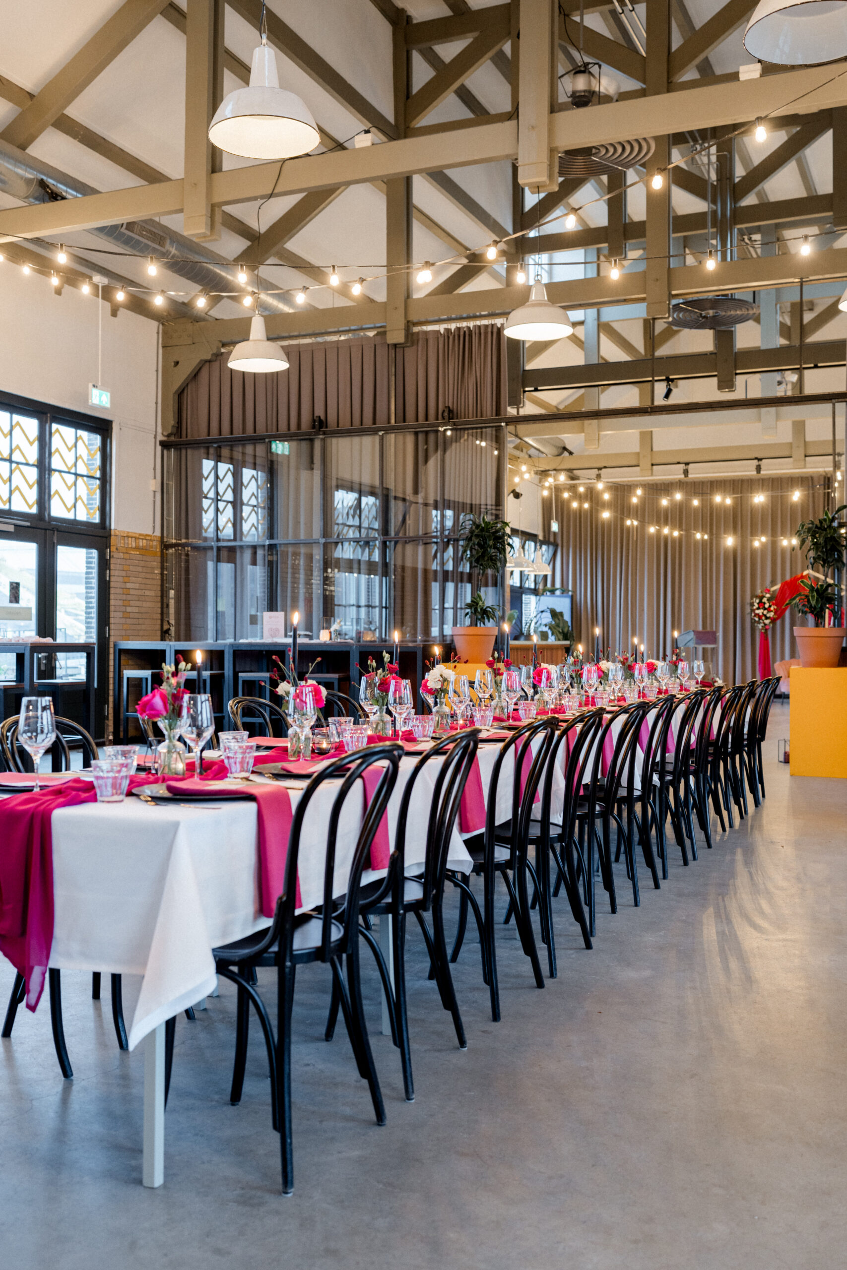 De RDM Kantine is een verborgen schat in Rotterdam, gelegen op het terrein van de voormalige Rotterdamsche Droogdok Maatschappij. Ooit de plek waar scheepsbouwers hun boterhammen aten, nu een unieke evenementenlocatie waar industriële geschiedenis samensmelt met hedendaagse flair. Met zijn ruime zaal, hoge plafonds en authentieke details biedt de kantine een inspirerende setting voor zowel zakelijke bijeenkomsten als particuliere feesten. Van gezellige borrels tot uitgebreide diners en zelfs trouwceremonies met een uniek Rotterdams rauw randje, de RDM Kantine is een onvergetelijke plek met een adembenemend uitzicht op de haven.